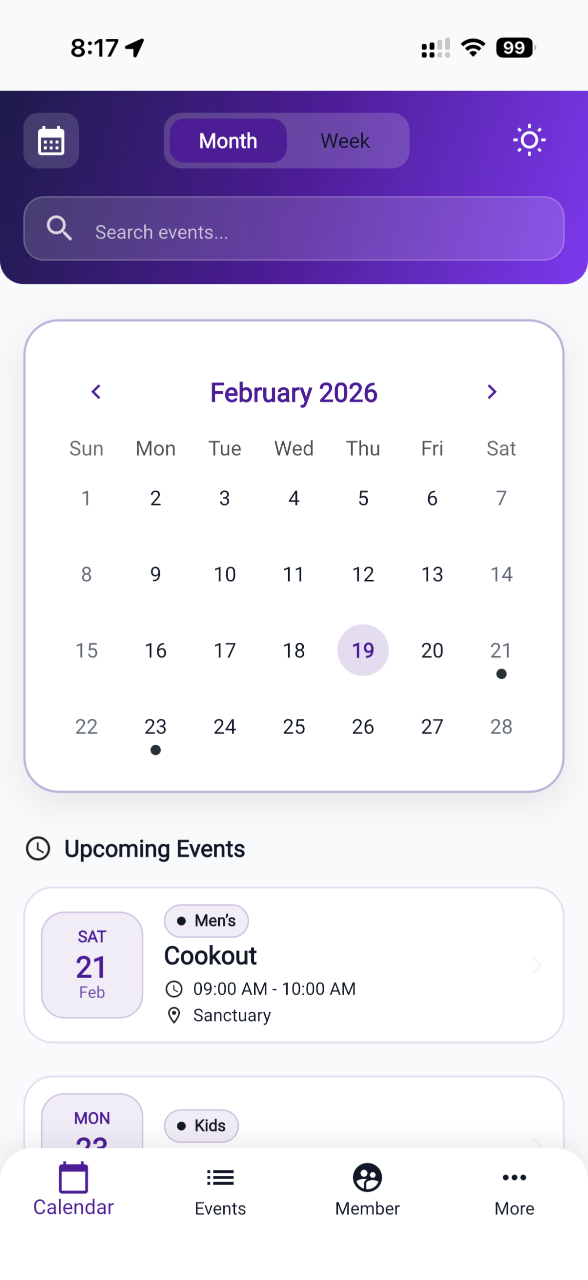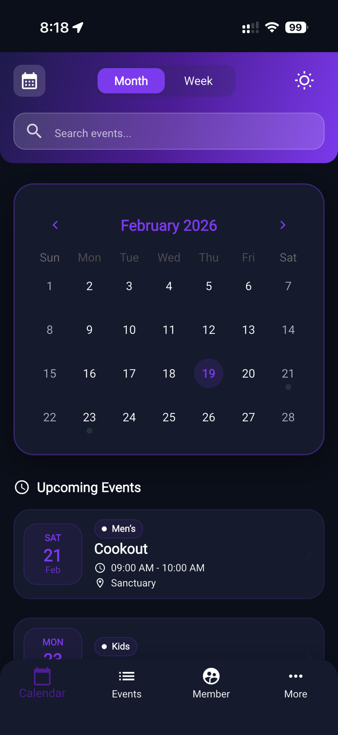 Assign leaders as admins over specific ministry groups — youth, worship, outreach, kids, etc. — so they can manage only their events, not the entire church calendar.